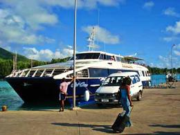 Zwischen den beiden Inseln Mahé und Praslin pendelt die "Cat Cocos" Fähre 2. - 3.x täglich. Bild unten zeigt die "Cat Cocos"